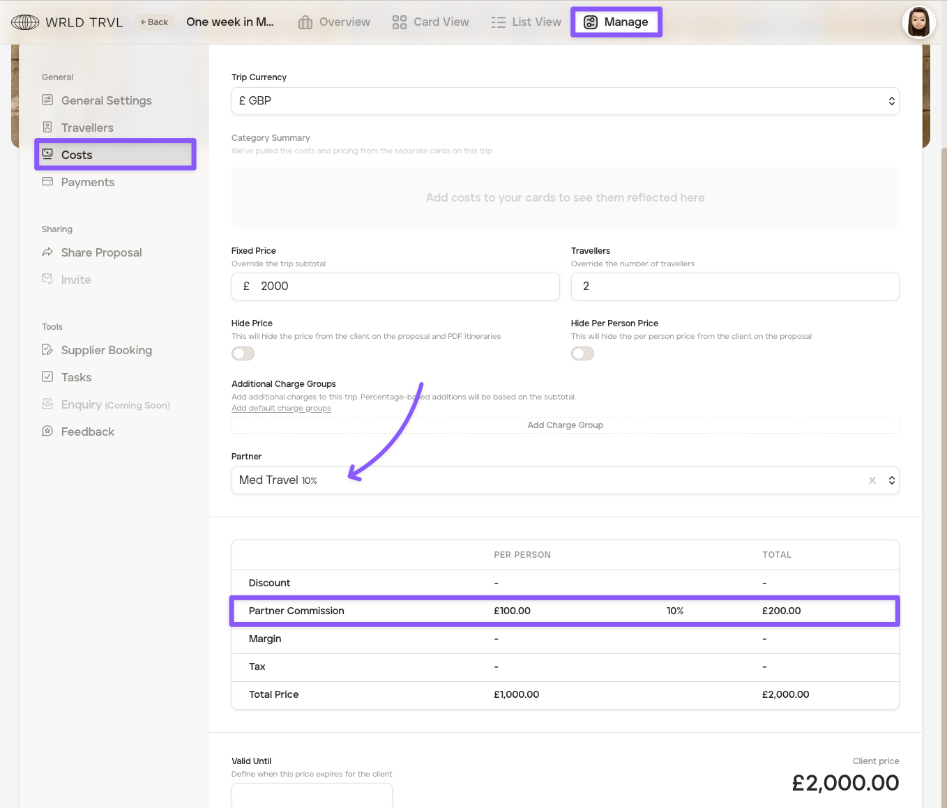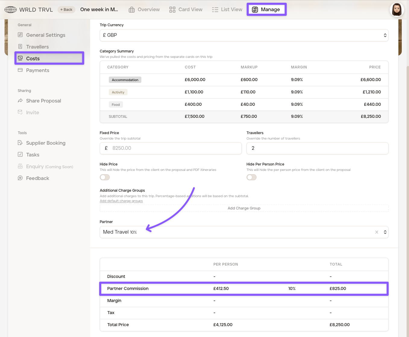 Once you have added a commission partner, you can record a commission partner against a trip. To do this, follow the steps below: