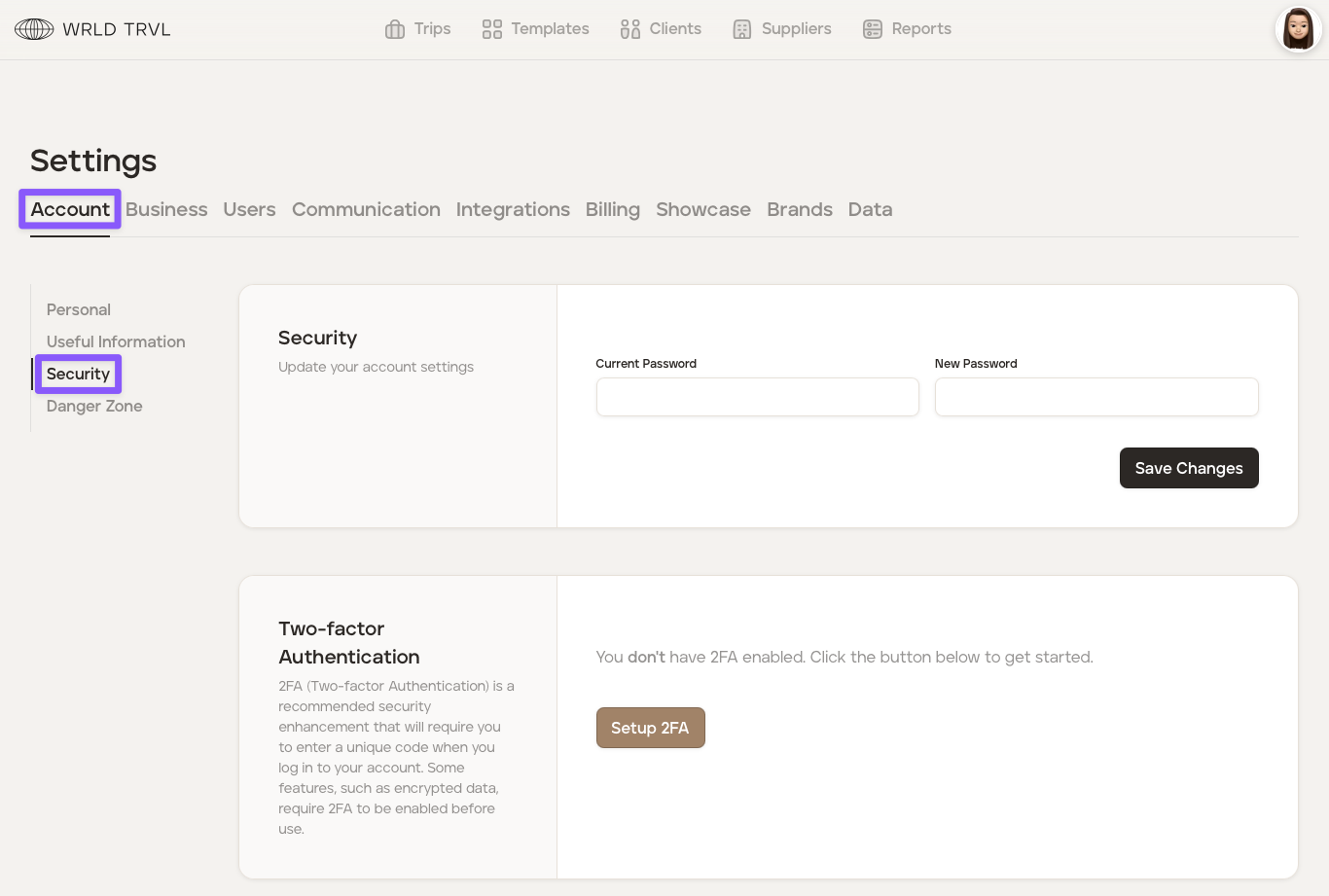 Click your avatar in the top right of your screen and then click ‘Settings.’