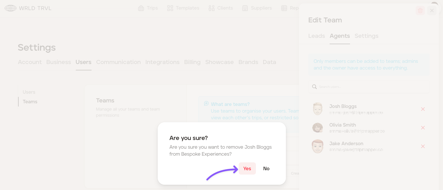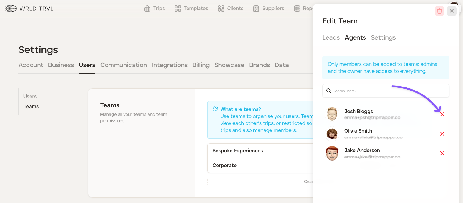 To remove a 'Lead' or 'Agent' from a team, follow the steps below: