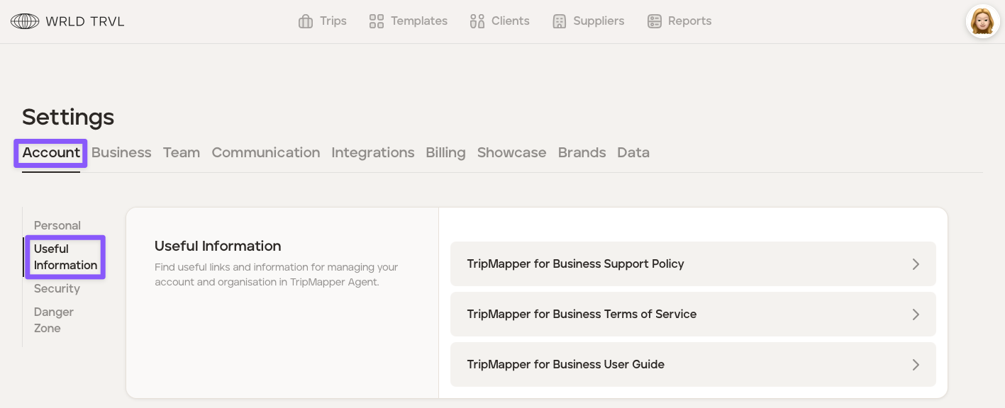 To find the TripMapper for Business Terms of Service and Support Policy: