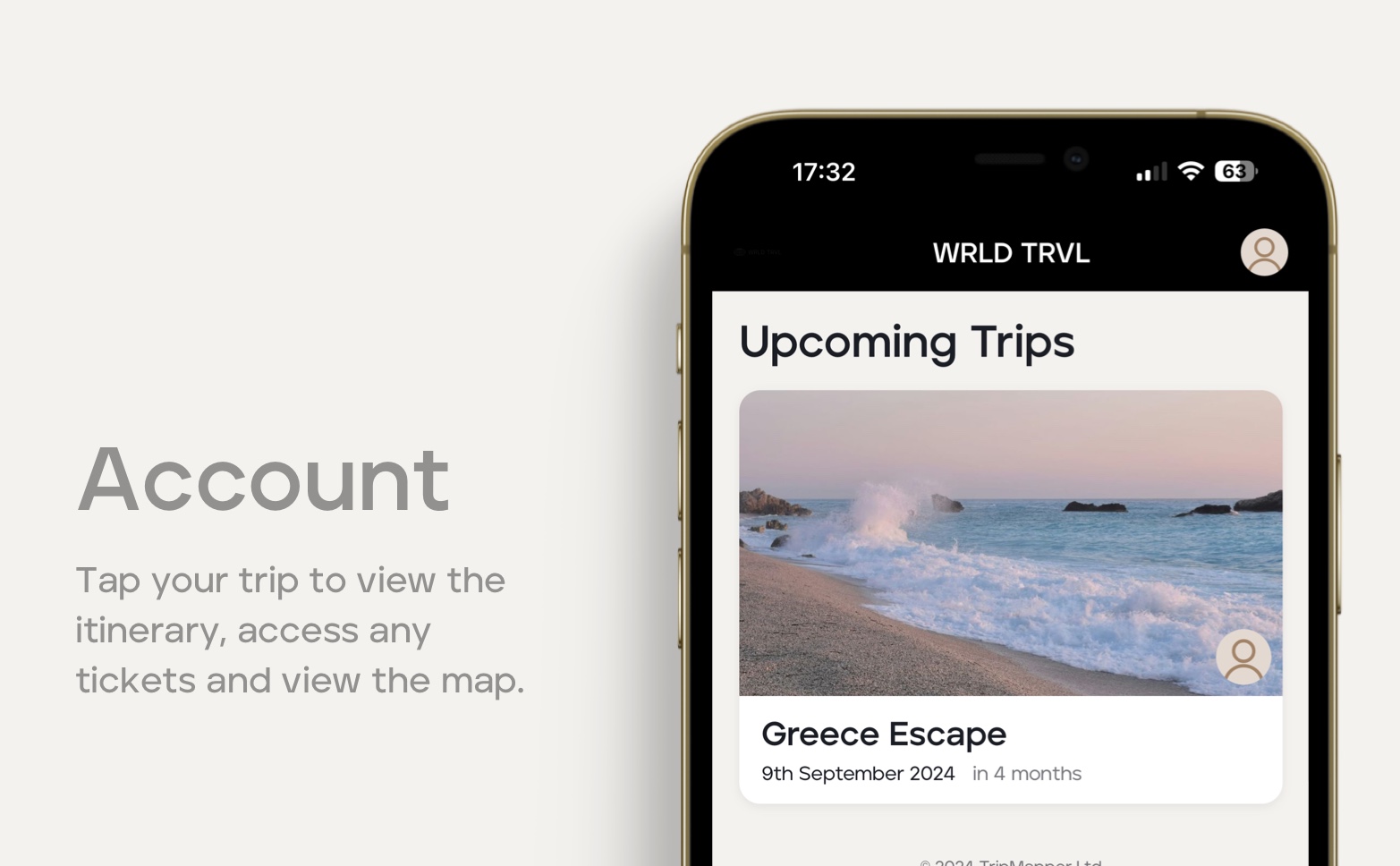 Tap your trip to view the itinerary, access any reservation documents/tickets and view the map.