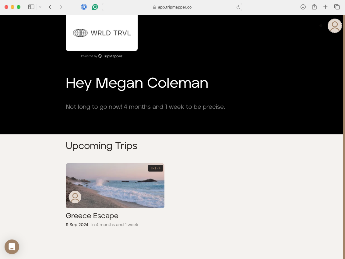 Once you have signed in to your TripMapper account, you will be taken to your travel adviser's area of the platform.