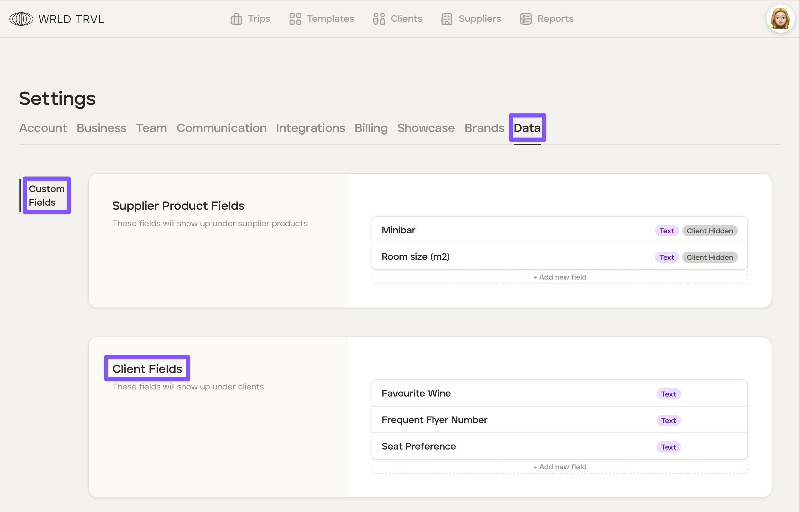 Click the 'Custom Data' tab and input the information in the custom fields you created in the 'Settings'.