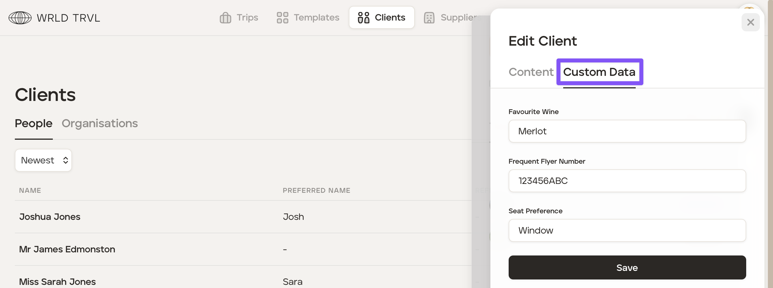 Name the field, for example, 'Favourite Wine' or 'Frequent Flyer Number' or 'Seat Preference' and click 'Create.'