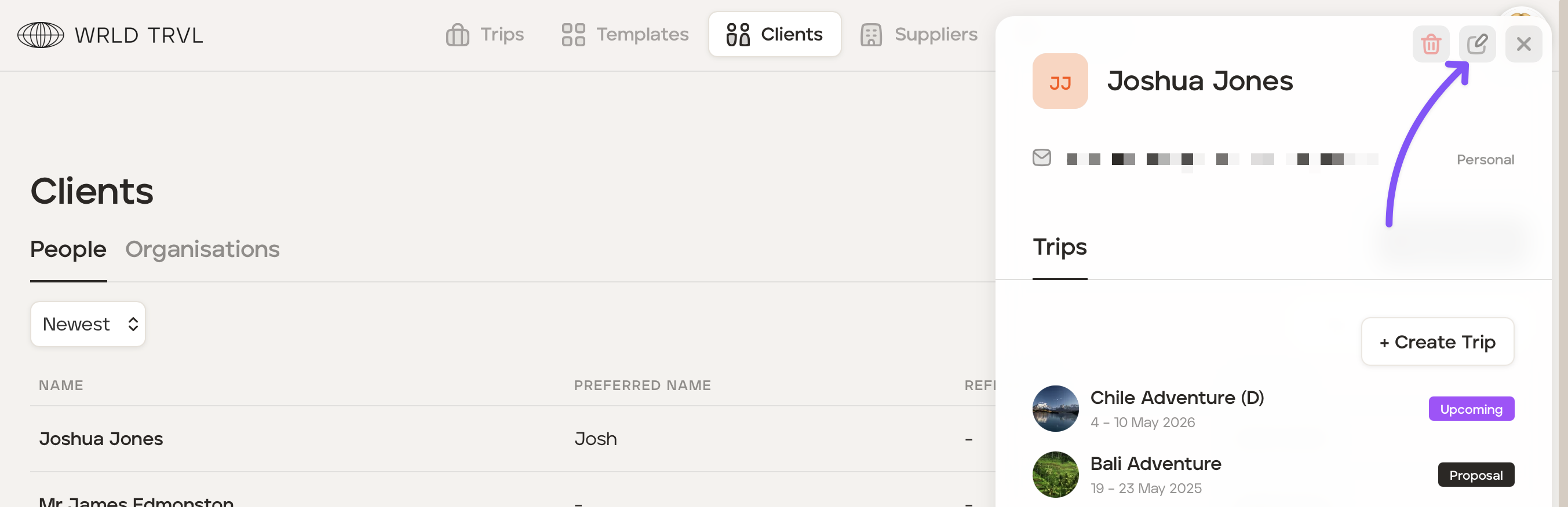 Click the 'edit icon' in the top right of the modal to change the details.