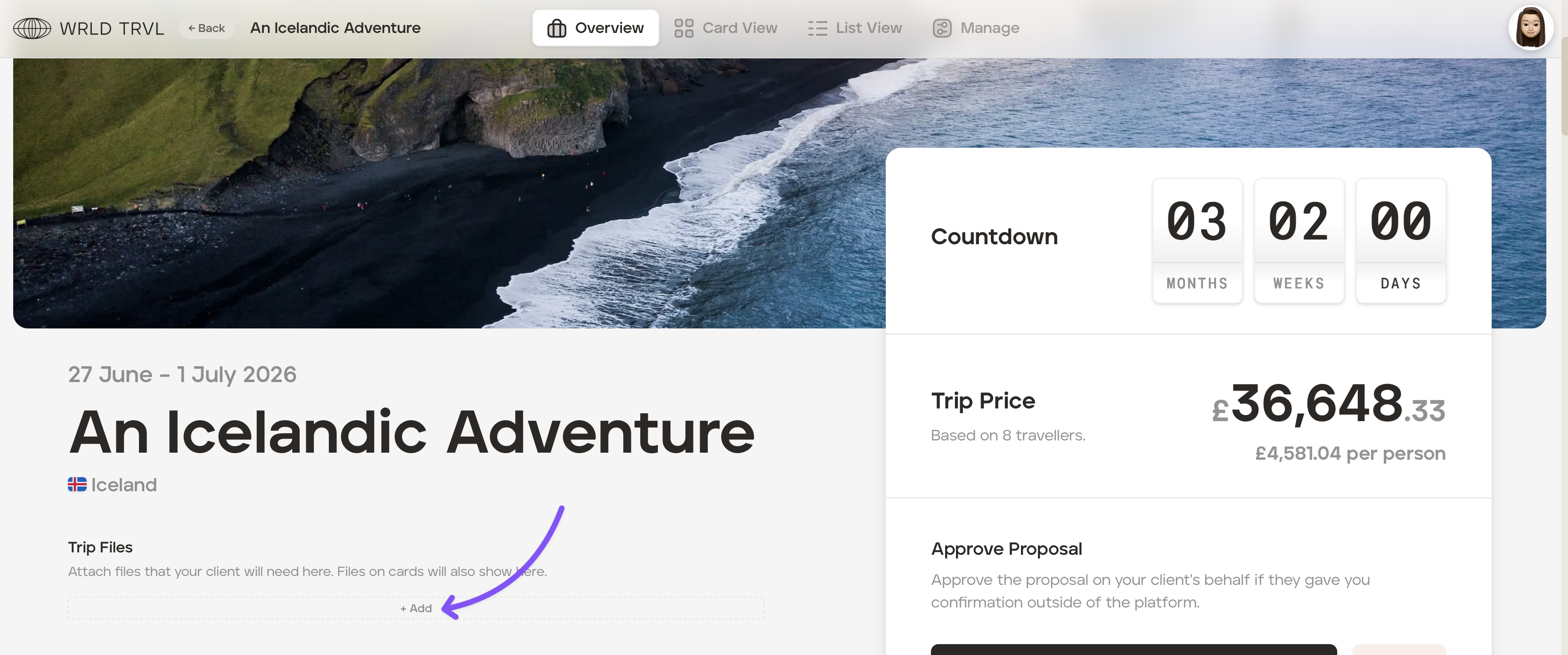 Add child-specific files - In the 'Trip Files' section, you can add additional files specific to this child itinerary.