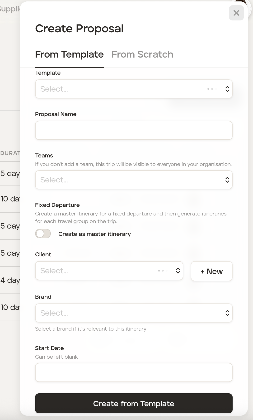 If creating the master itinerary from a template, fill in: