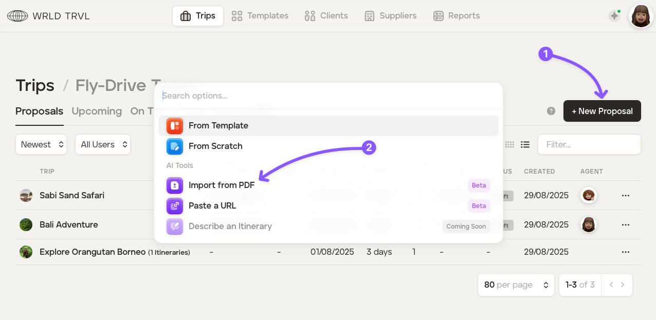 Click '+ New Proposal' and then 'Import from PDF'.