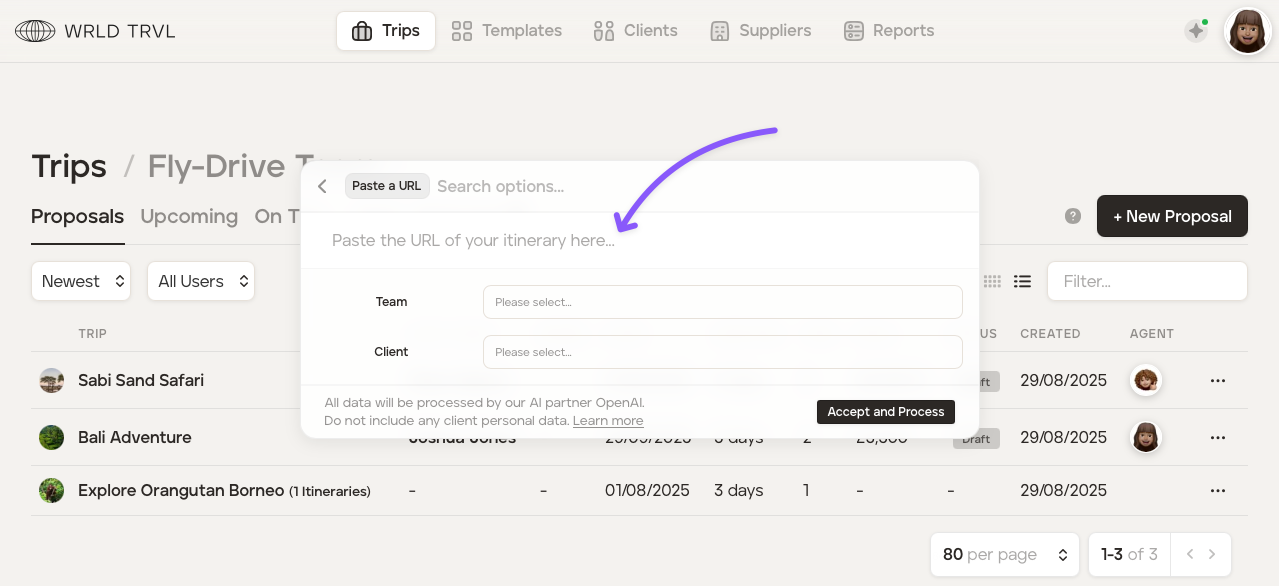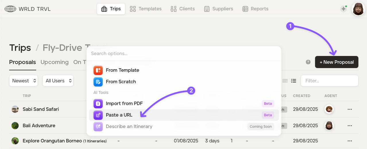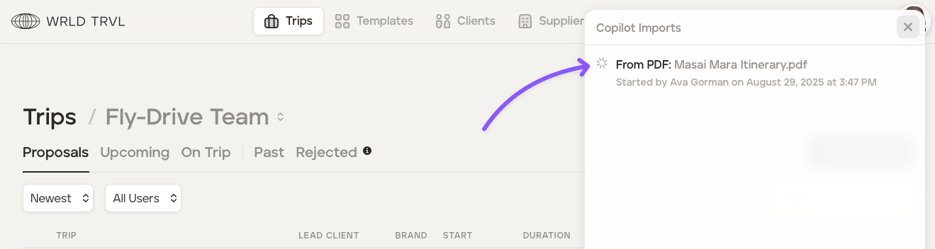 TripMapper for Business supports importing travel itineraries from external sources to automatically populate your itinerary (written content only, not images). You can upload PDF documents or paste URLs containing travel itineraries, and our software will extract and convert the written content into TripMapper's itinerary format.