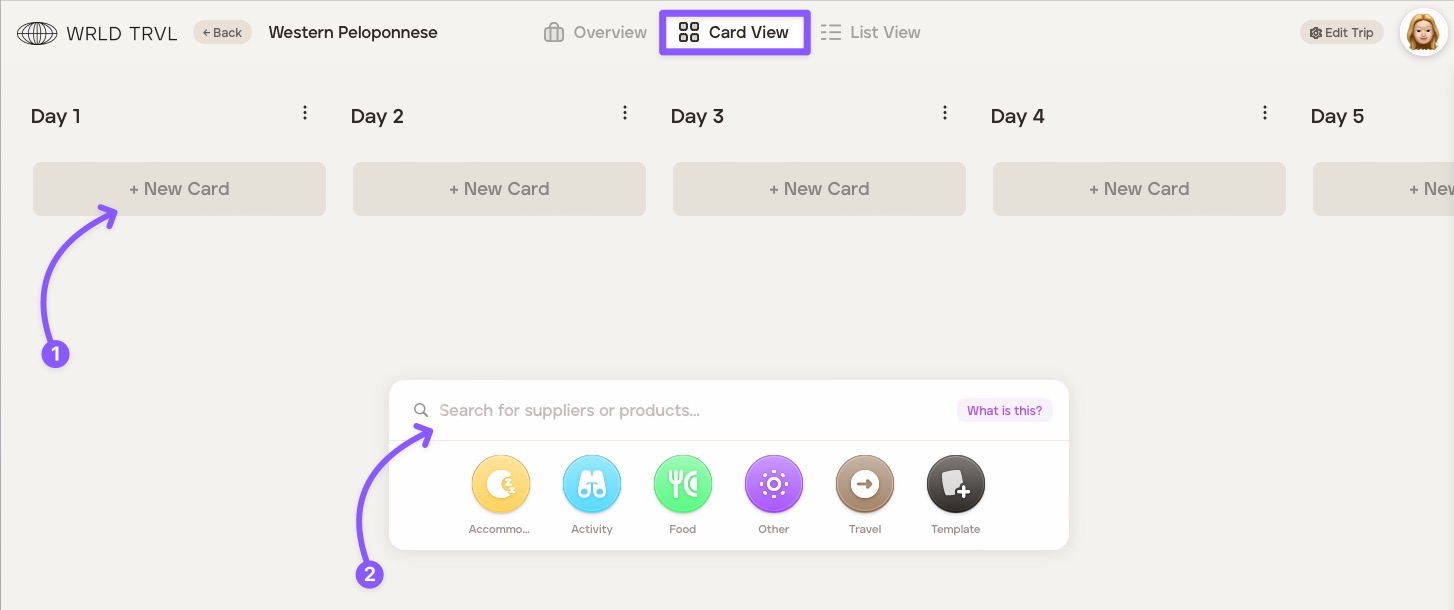 To add itinerary cards to proposals using card view, follow the steps below.