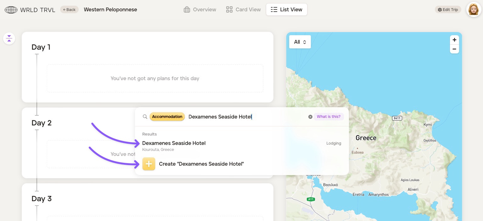 If you have some itinerary ideas which you do not want to place within the proposal itself, you can follow the same process of adding cards in the ‘Trip Ideas’ column on the left-hand side of the screen.