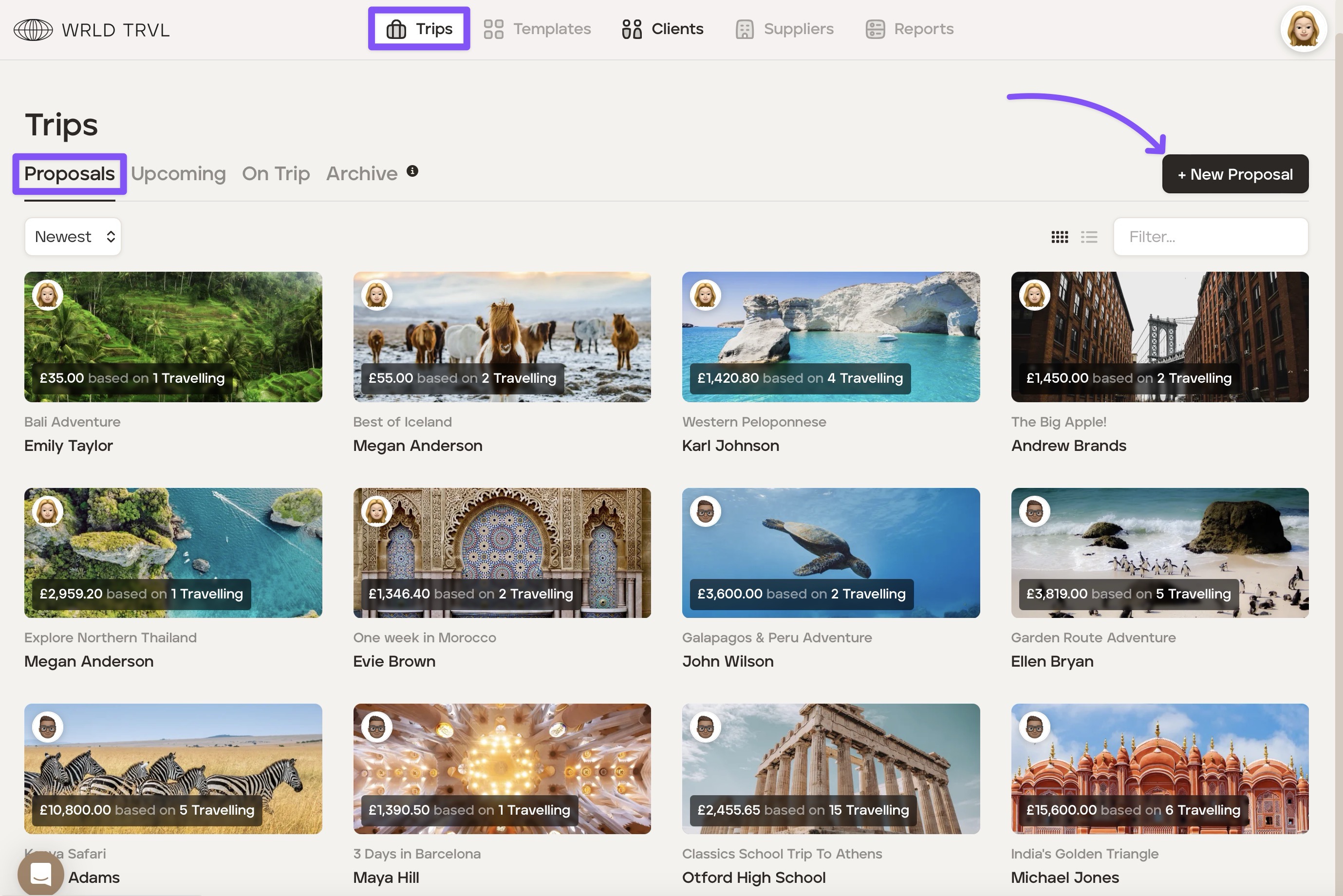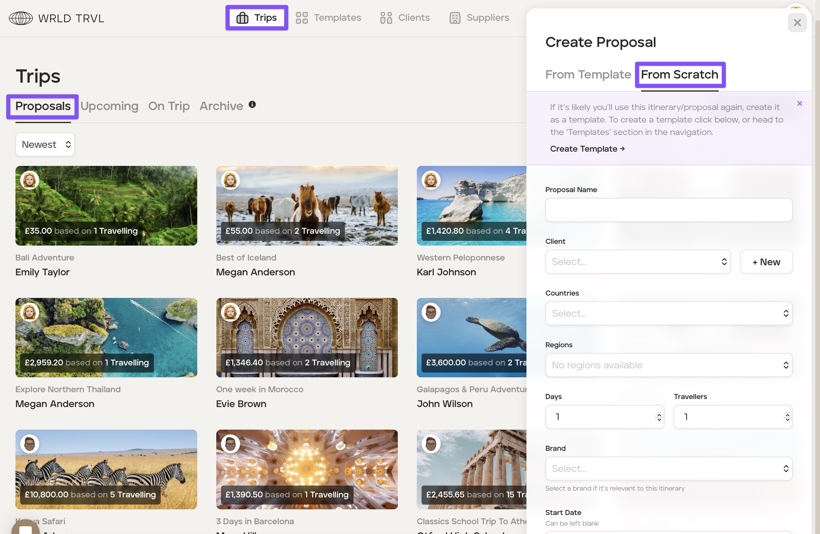 You will now see the proposal ‘Overview’ screen and can start to build your itinerary from scratch.