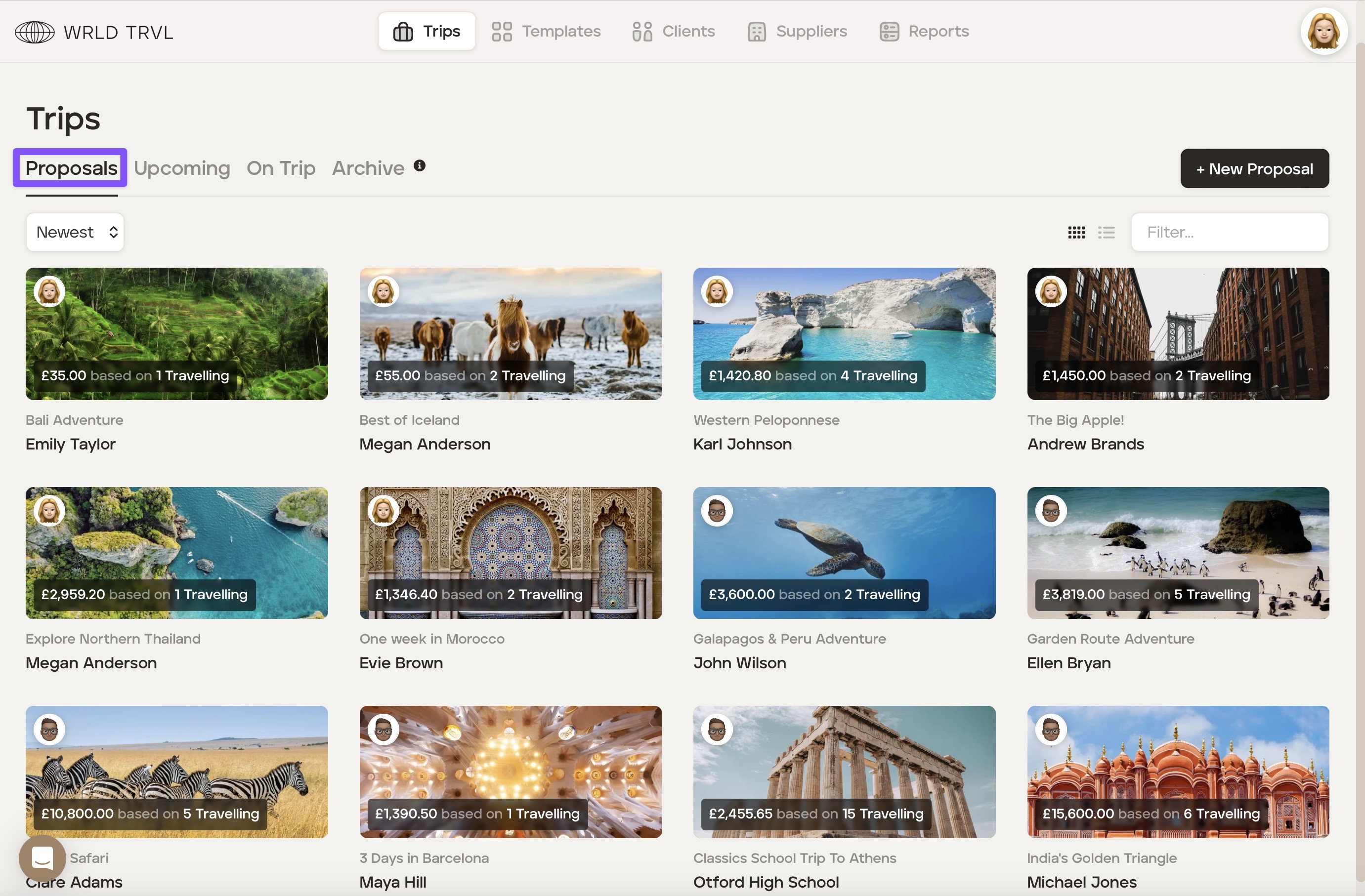 ‘Proposals’ are proposed itineraries which have not yet been approved by your client.