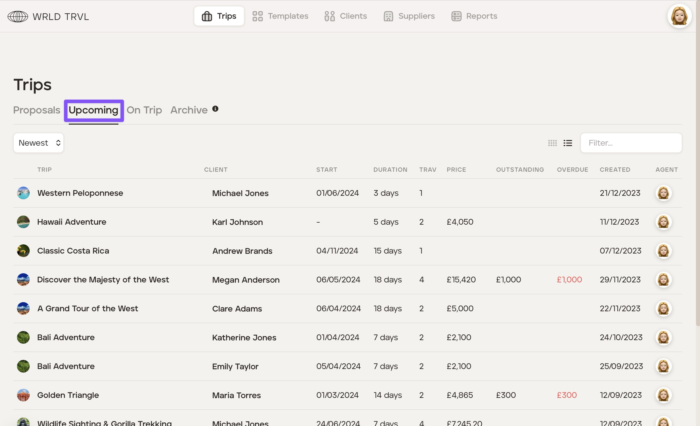 'Proposals' which have been approved by your client are then regarded as ‘Upcoming’ trips.