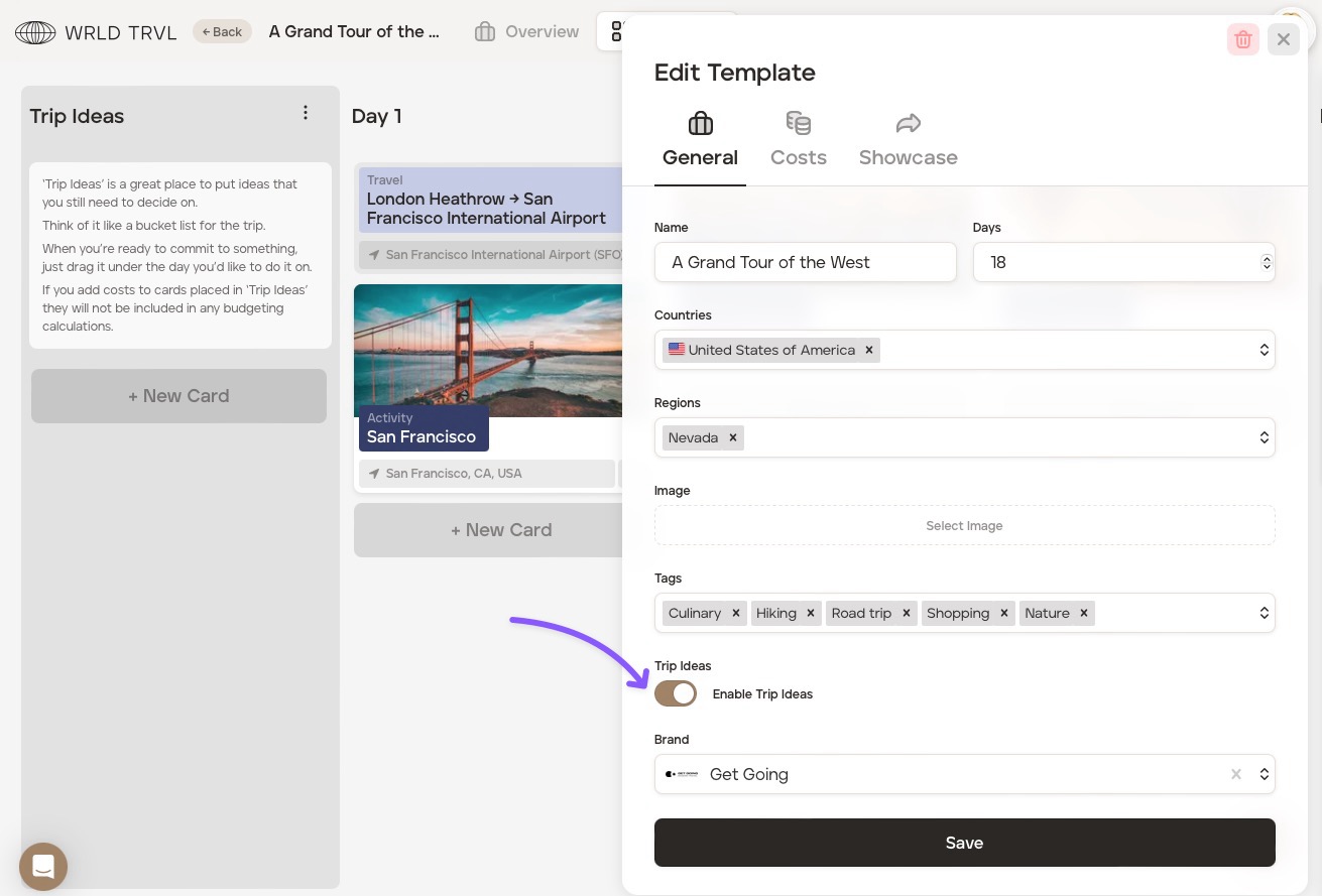 Click the 'Save' button. The 'Trip Ideas' column will now disappear from view.