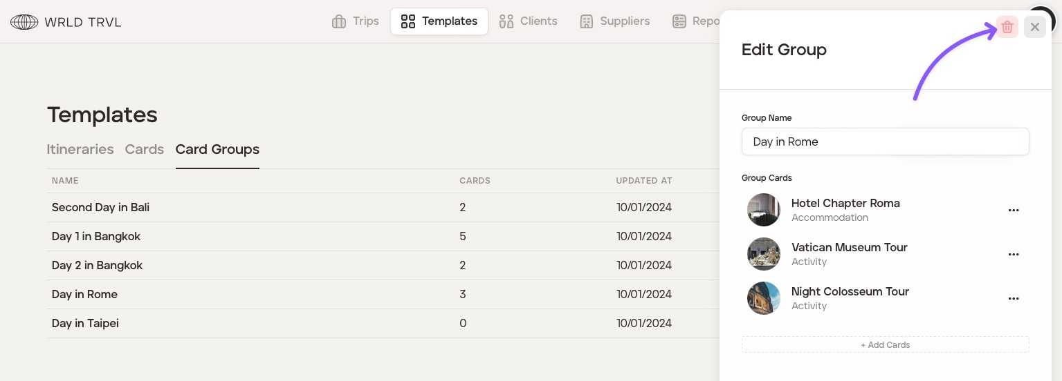 Head to the 'Templates' section and then click the 'Cards Groups' tab.