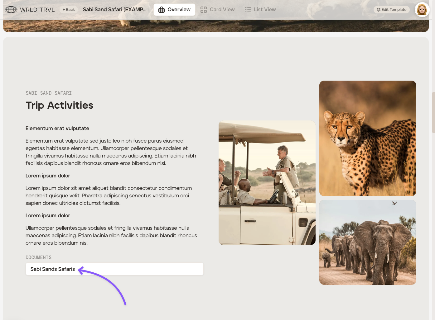 Add a template document to the Overview of a template itinerary or a trip itinerary