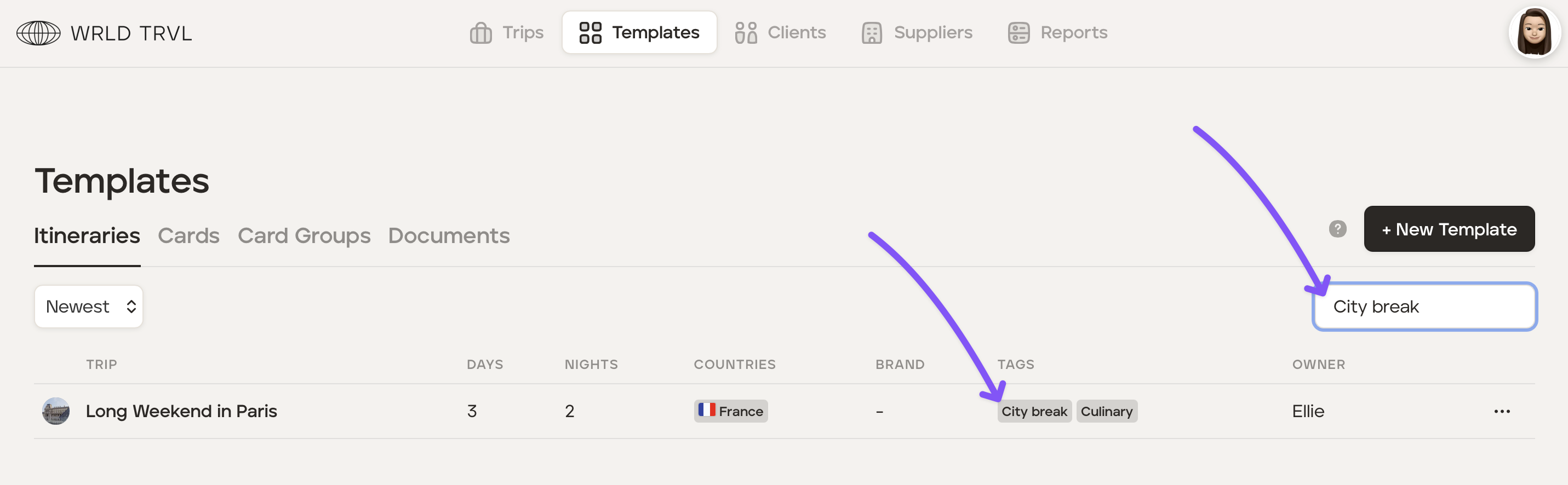 Adding tags to template itineraries makes it easy to search and find what you are looking for!