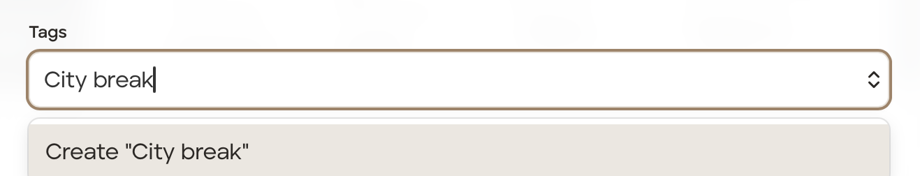 In the 'Tags' field type the tag you wish to use. After typing the tag click 'Create"[Tag]'''. Once created, that tag will be available in the tag drop-down menu to use for template itineraries going forward.