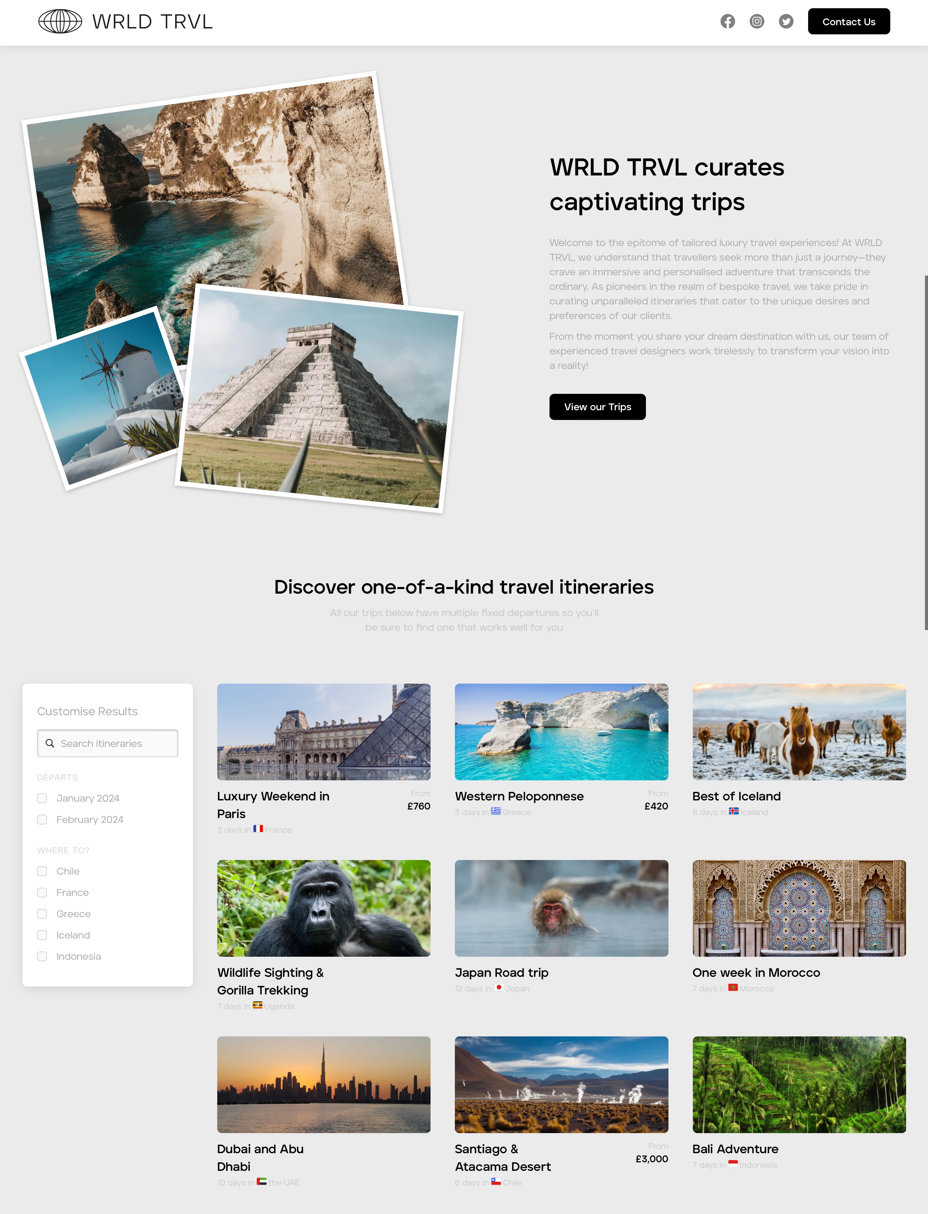 The main Showcase page will be branded with your logo, contain your content, and will include your chosen template itineraries. When a template itinerary is clicked by a potential client browsing your pages, they will be shown the itinerary Showcase page, which is also branded with your logo, and contains your content and imagery.