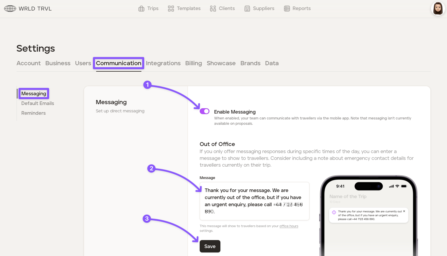 Our built-in messaging feature allows you and your clients to stay connected before, during and after their trip.