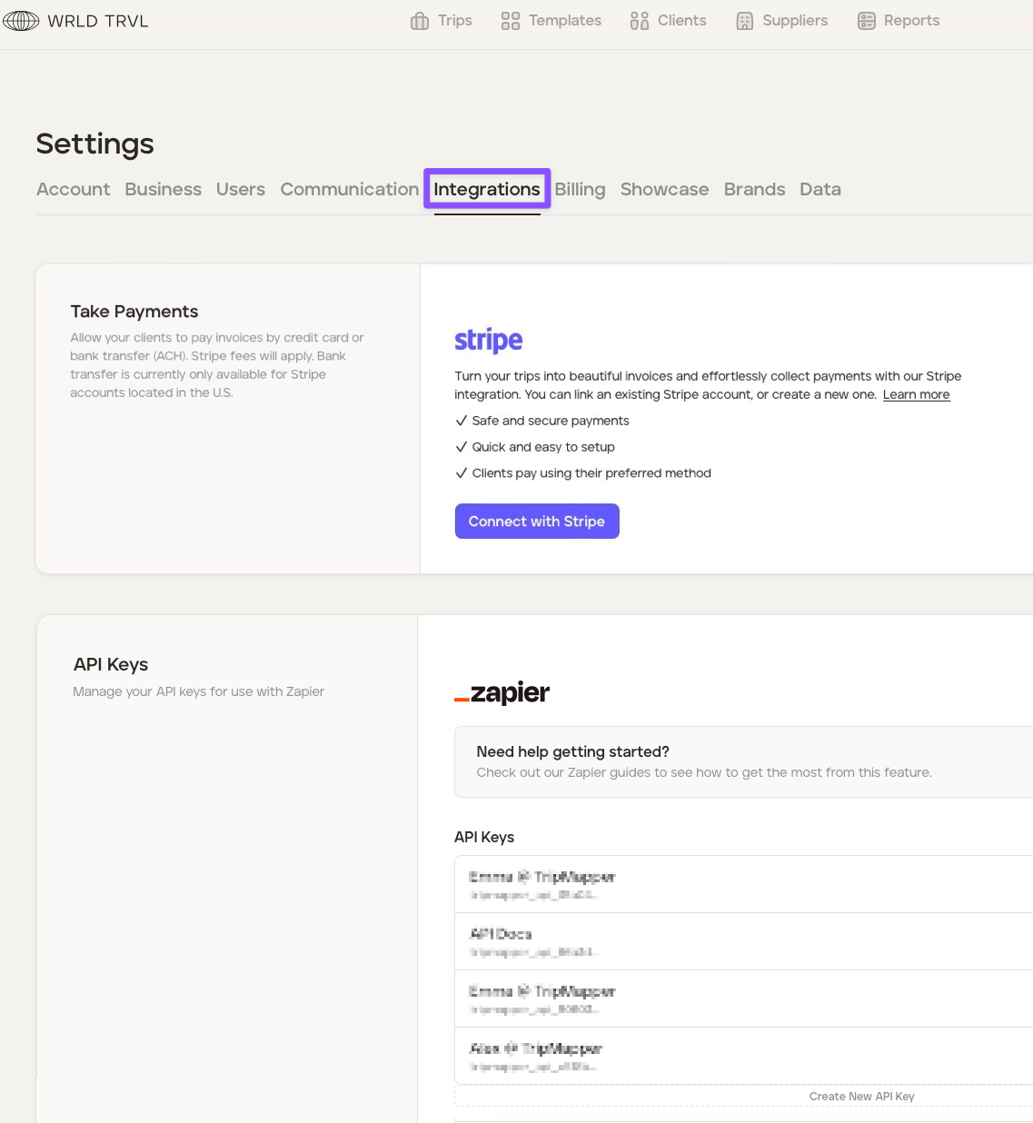 Remain in 'Settings' (or click the avatar in the top right corner of your screen and then click 'Settings') and click the 'Integrations' tab to integrate with other applications.