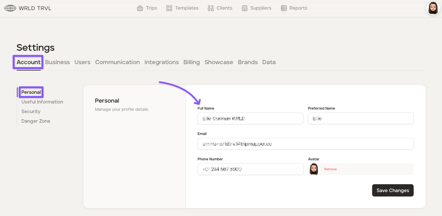 When creating your new TripMapper for Business account, you would have added basic personal information. Complete your personal profile by following the steps below: