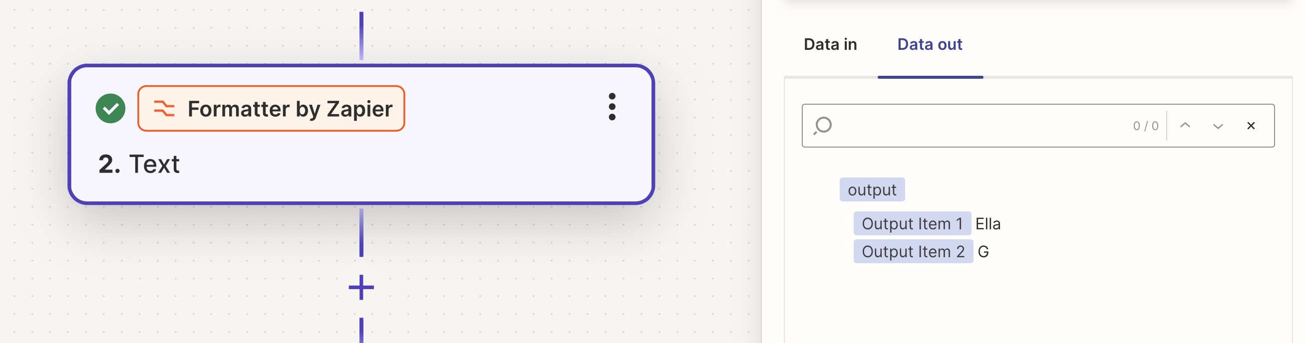 You should end up with something like the below screenshot, where the name is split into two Oputput Items for use in future actions.