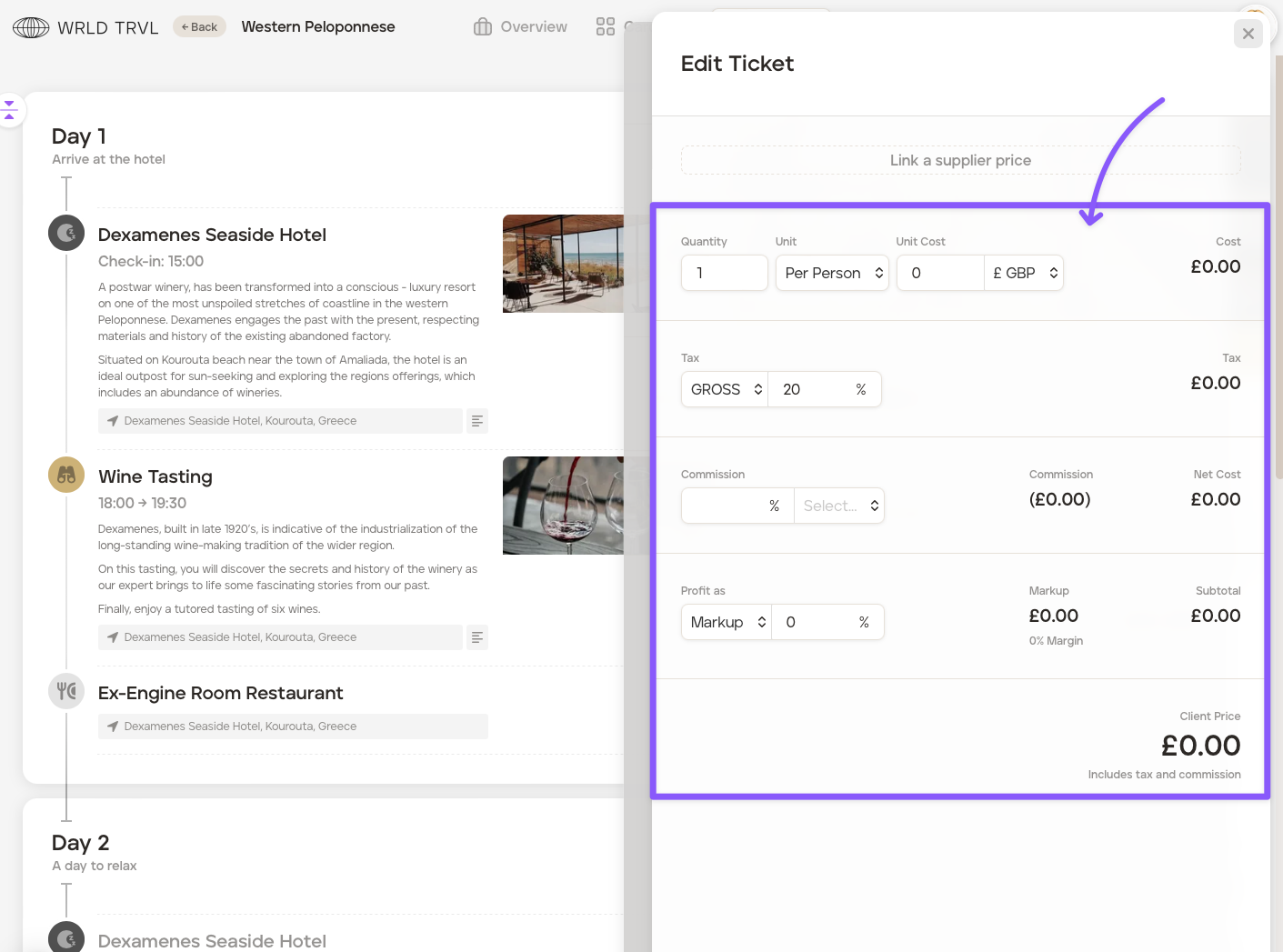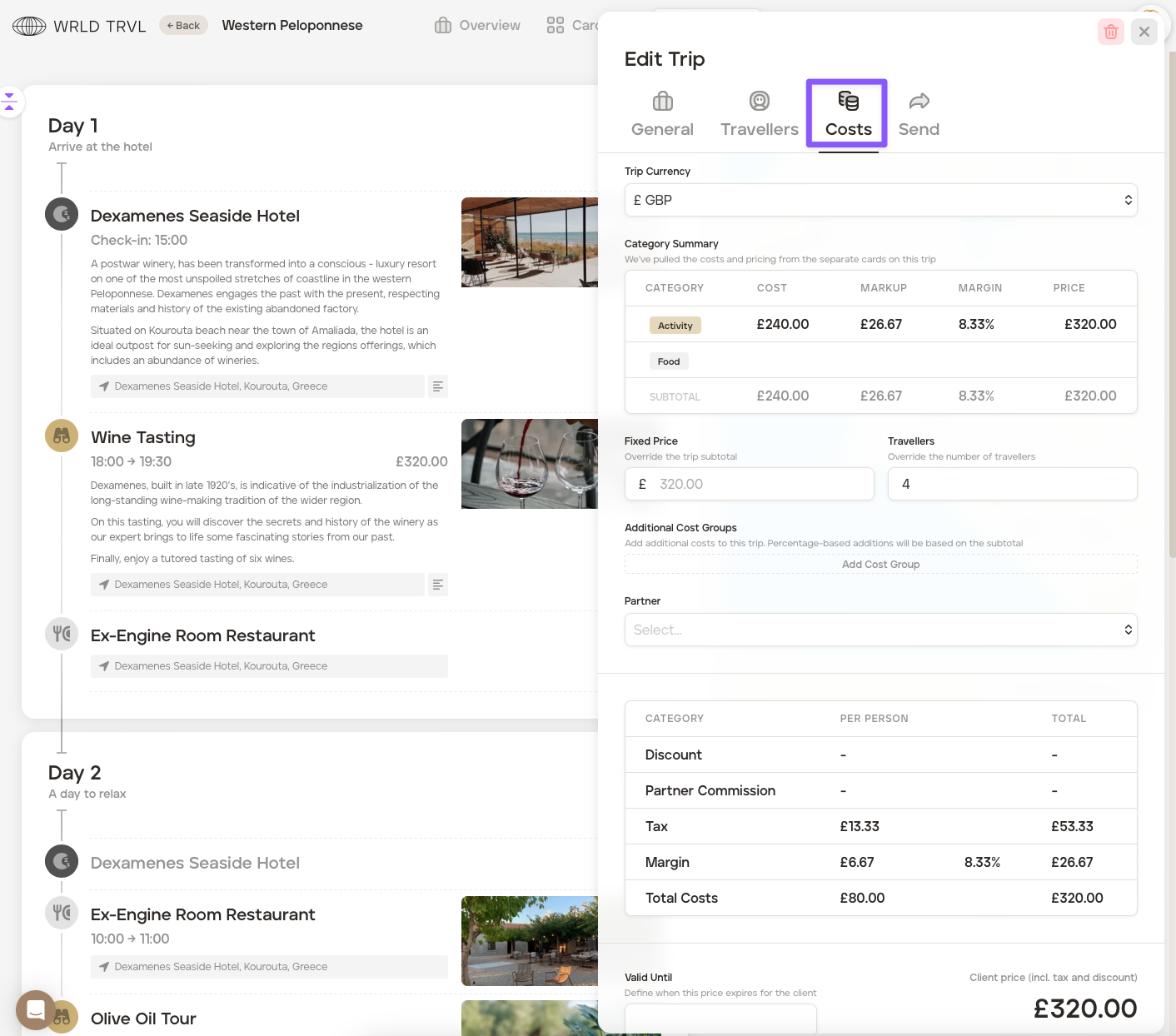 To add a fixed price to your itinerary instead of adding individual costs, check out the 'Add a fixed price to your itinerary' article.