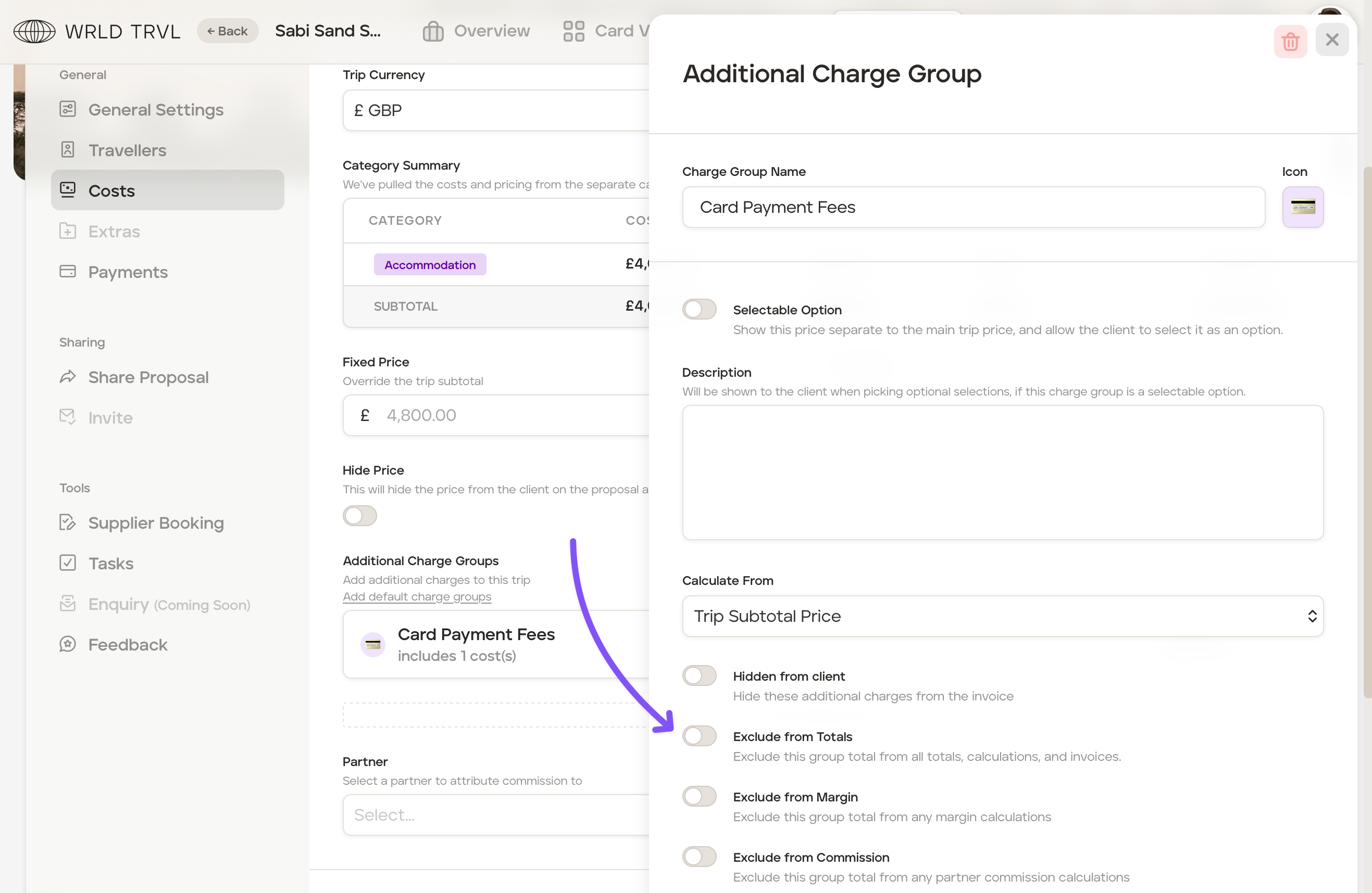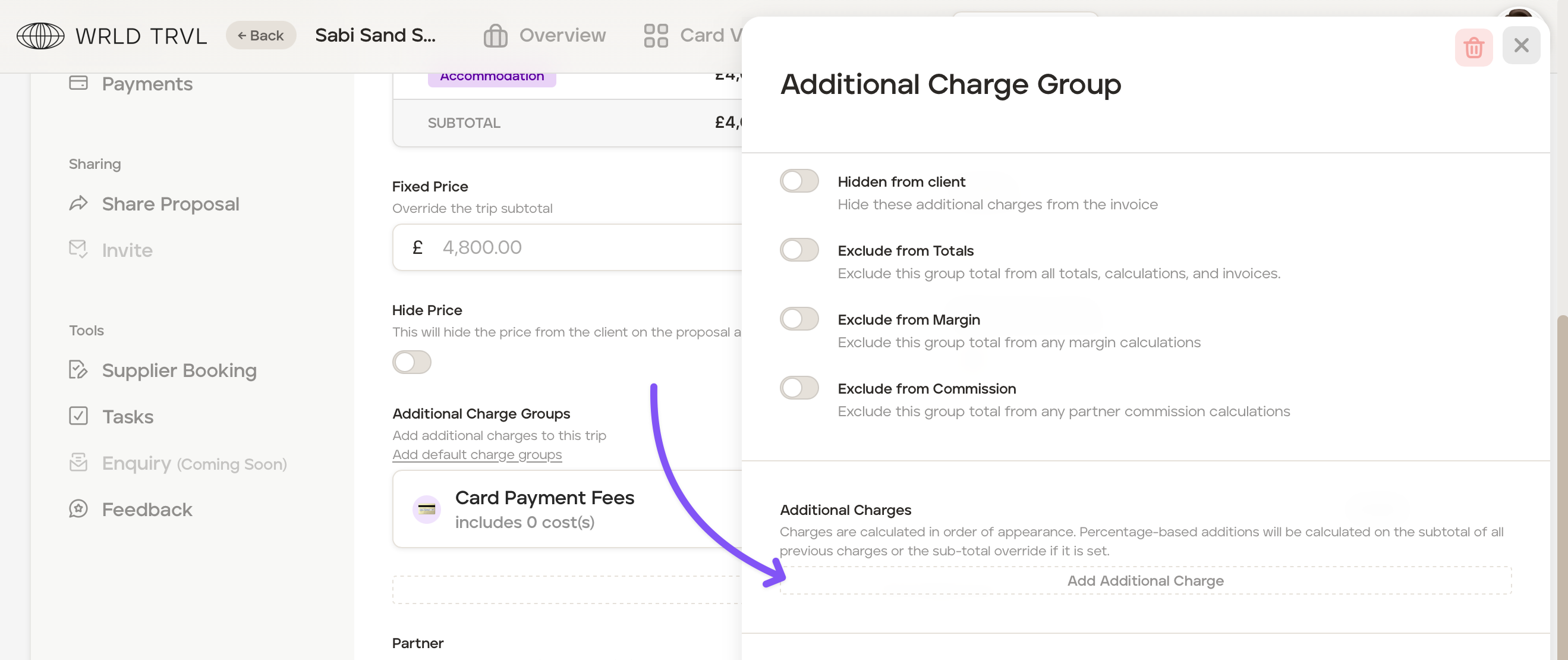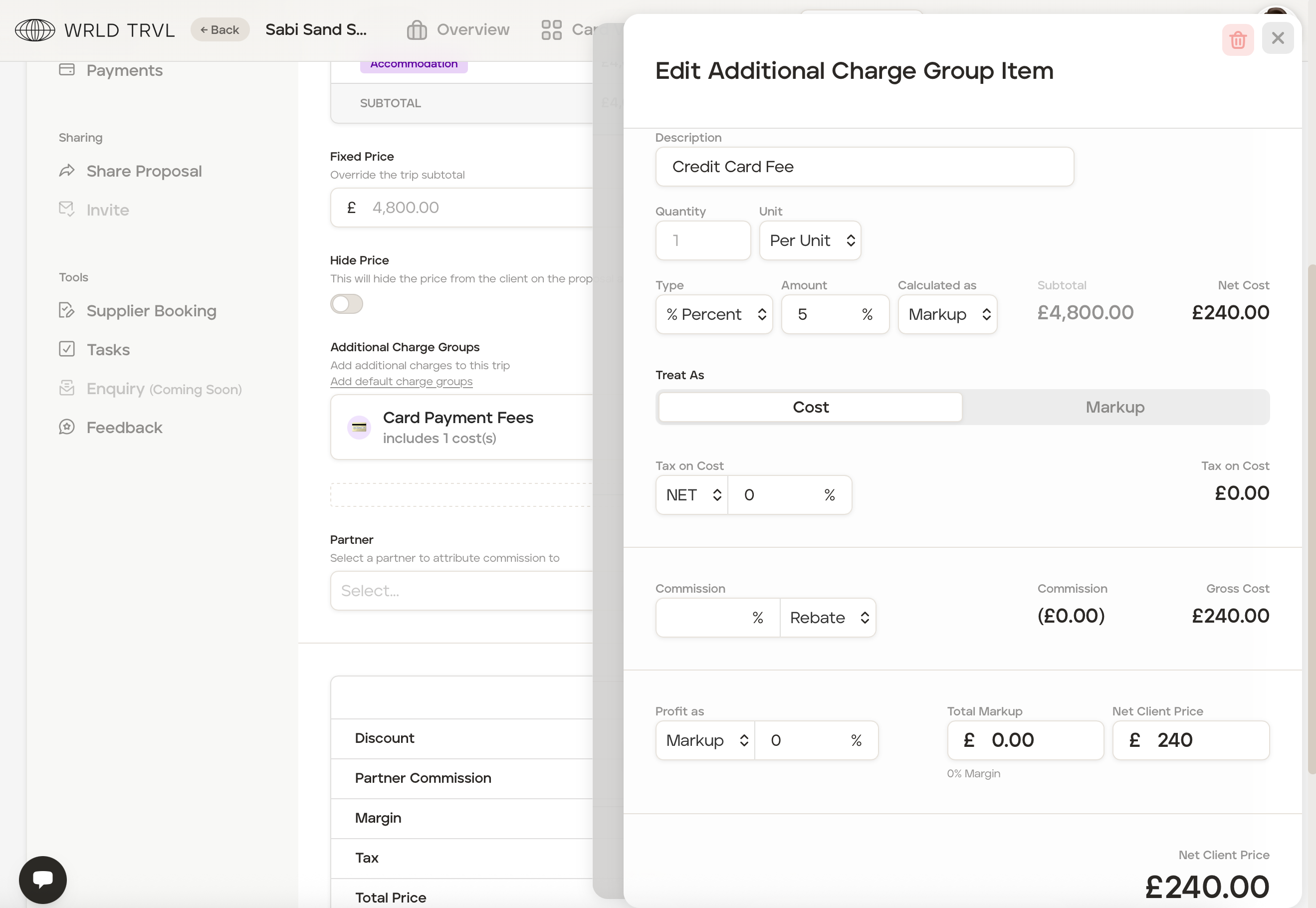 Add an additional charge of £25 to the total client price to cover credit card fees your travel business incurs. Follow the steps below: