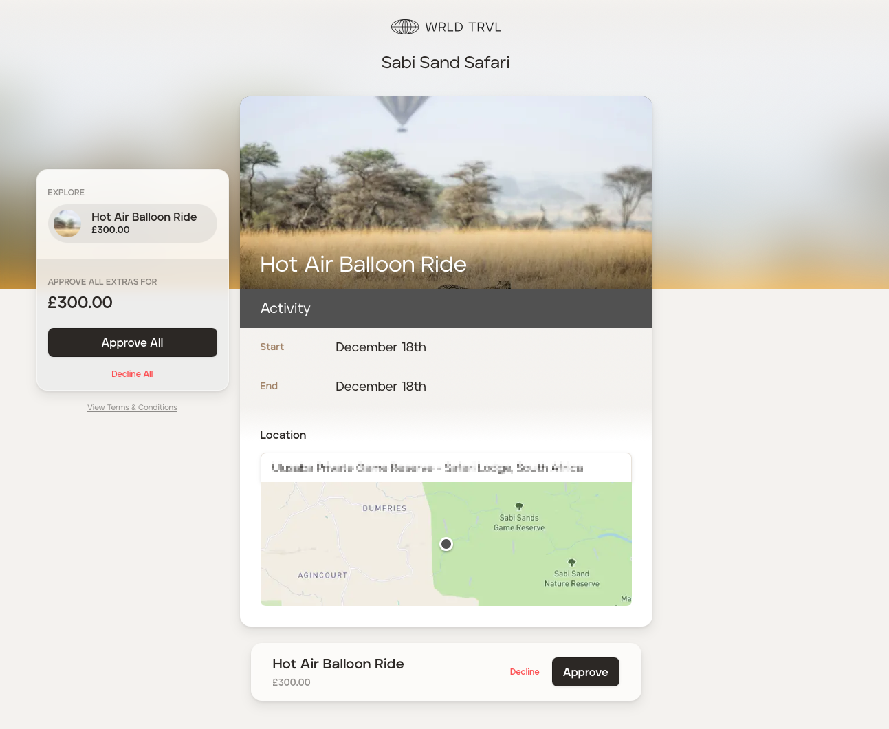 3. When the client clicks the link, they can view the extra(s) and approve or decline.
