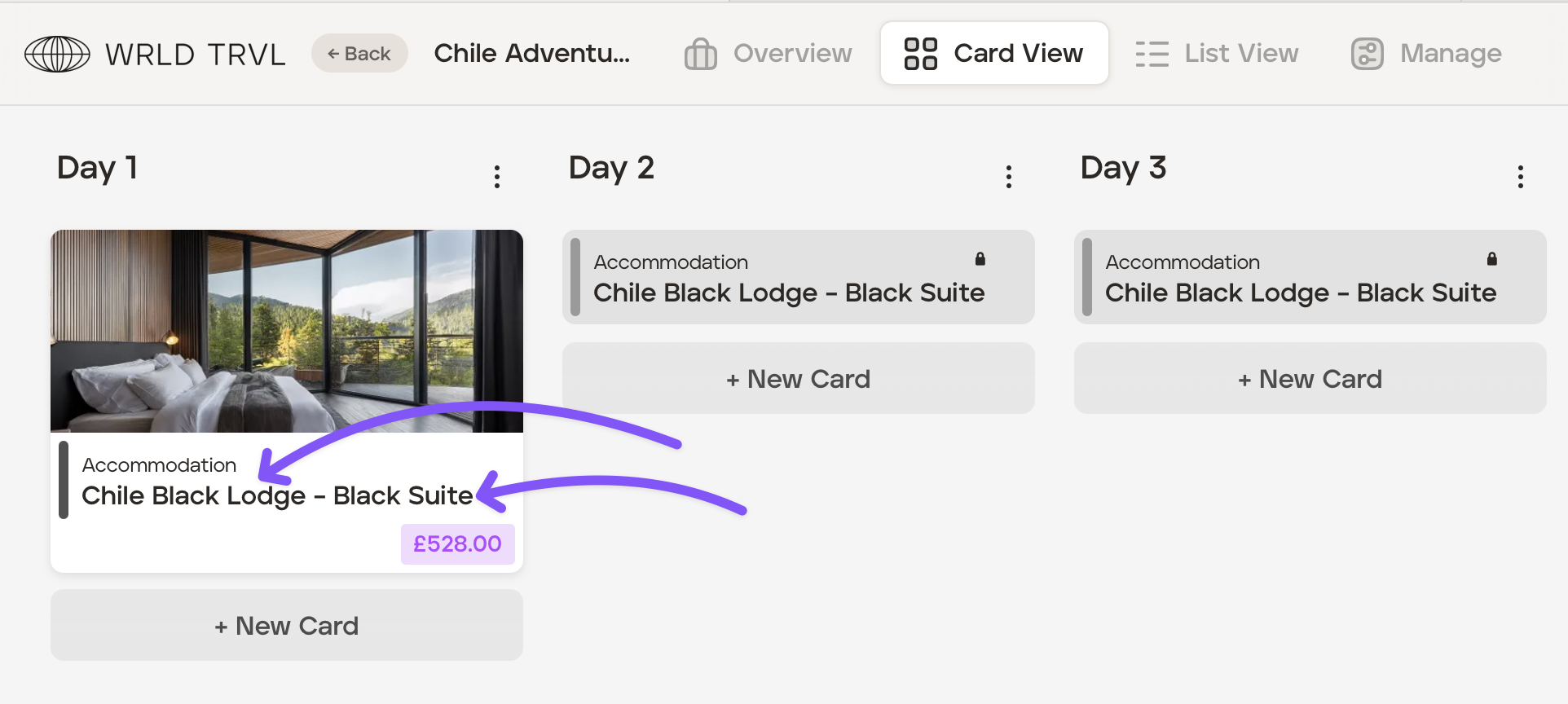 For any supplier accommodation cards added to an itinerary after 16th June 2025, both the supplier name (for example, the hotel name) and the supplier product (for example, the room type name) will be included in the card title.