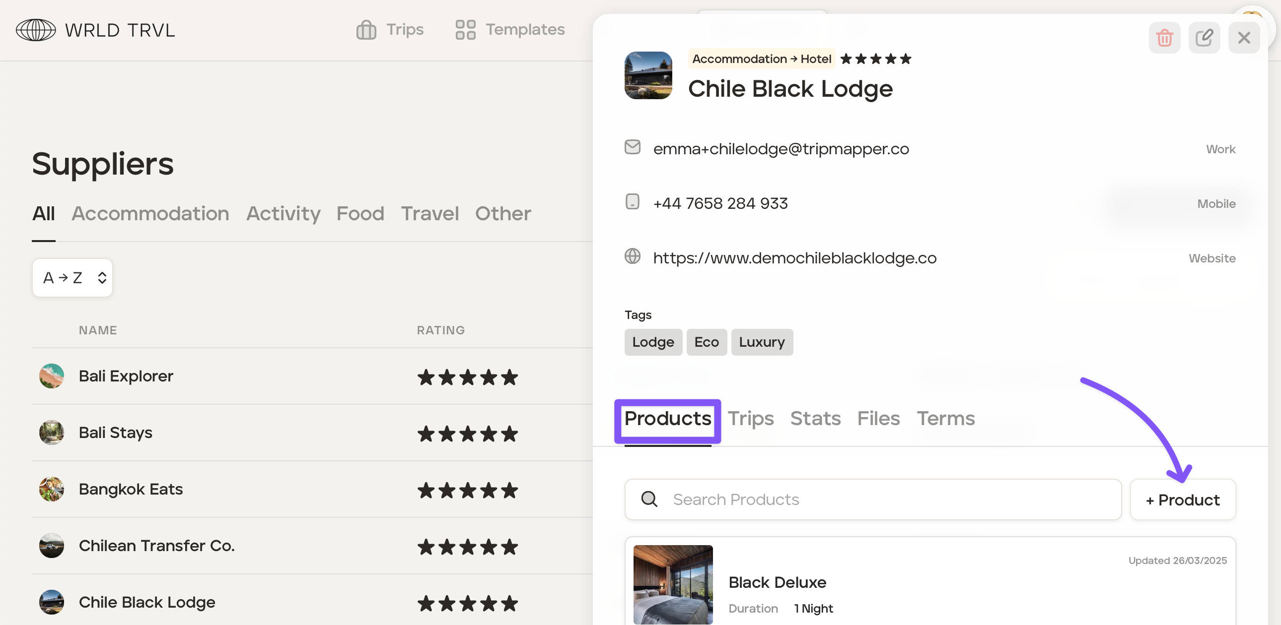 Click ‘+ Product’ button located in the 'Products' tab to add a supplier product.