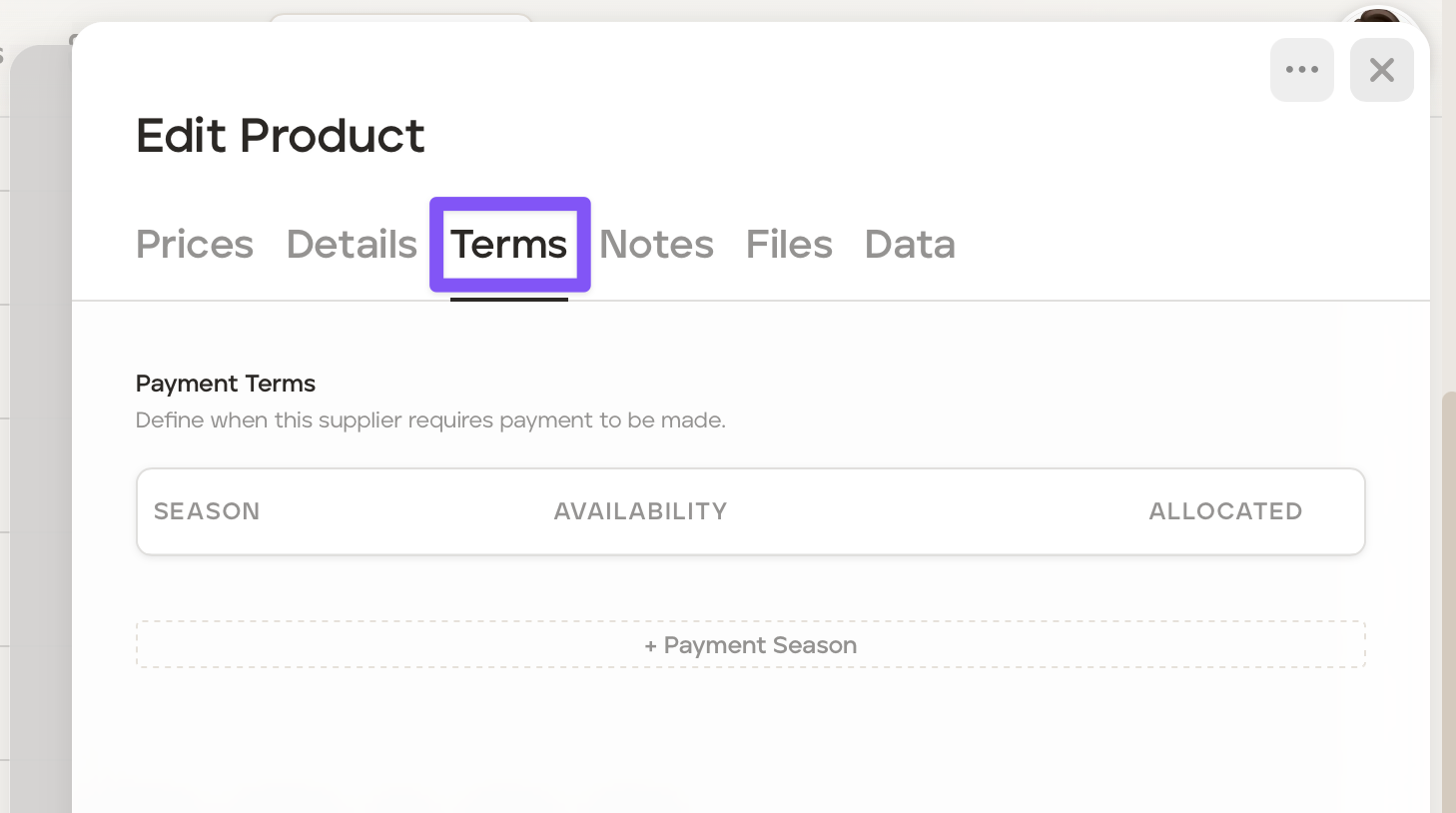 You can add payment terms to suppliers so you know exactly when to pay them. Supplier payment terms can be set at both supplier and supplier product level.